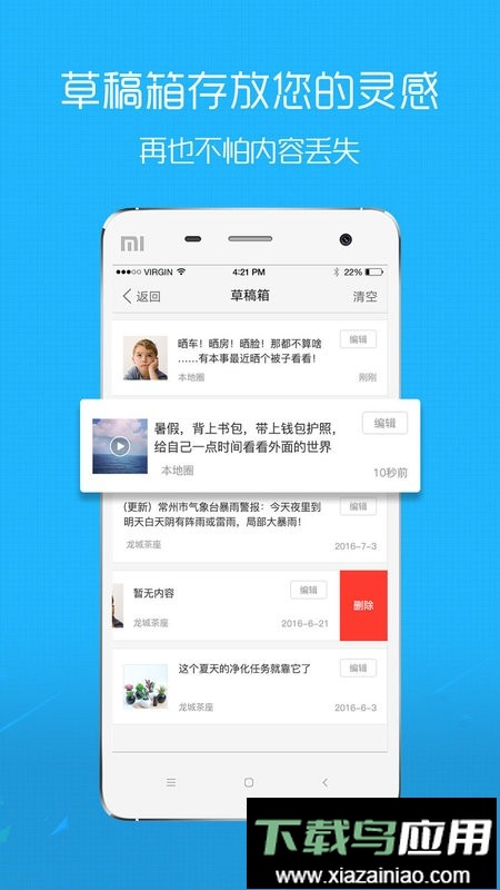 4、【草稿箱】随时保存,随时发布;存放灵感片段,避免内容丢失。