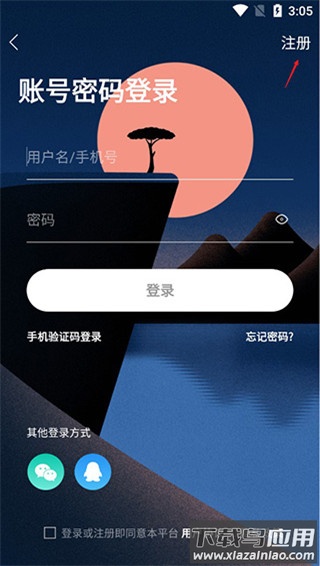 3、已有账号可直接输入信息登录,无账号可点击右上角进行注册;