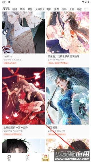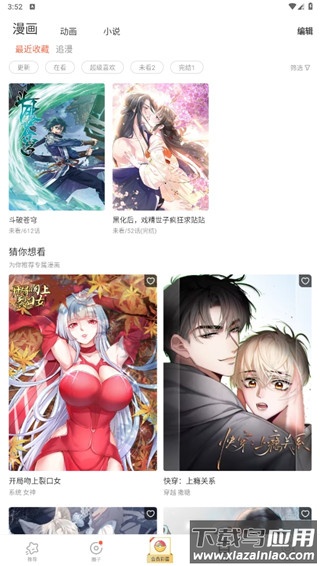 返回首页点击“书架”栏目,即可查看已收藏的漫画。