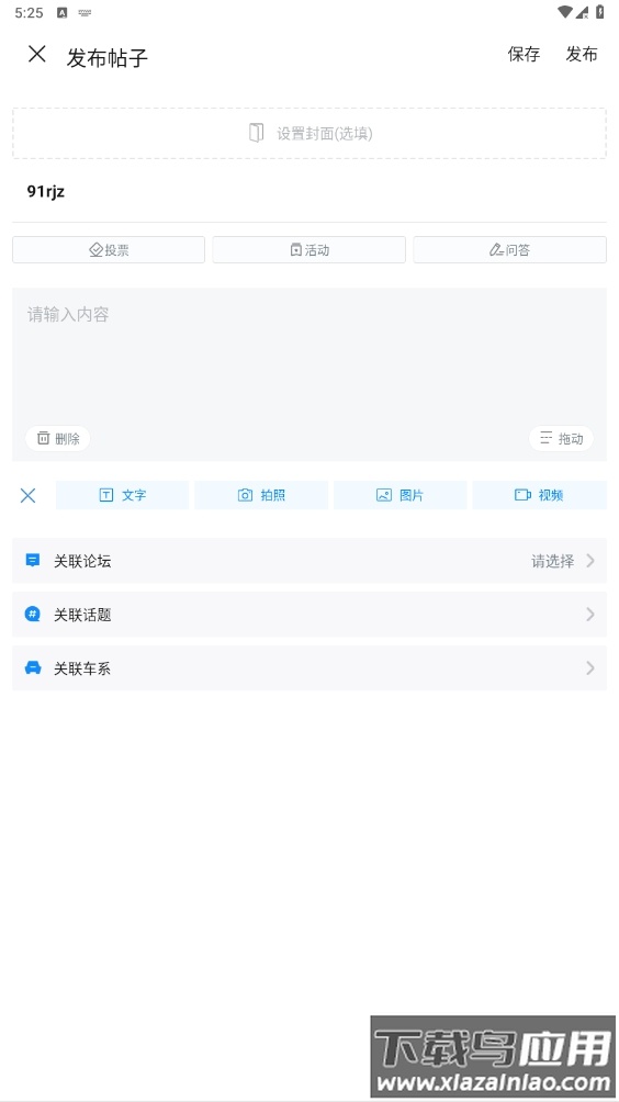 4、选择帖子、游记或图片视频等类型,此处以帖子为例;