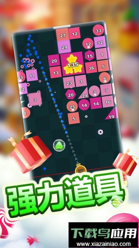 3. 滑动屏幕即可调整方向并发射弹球,击碎满屏方块释放压力;