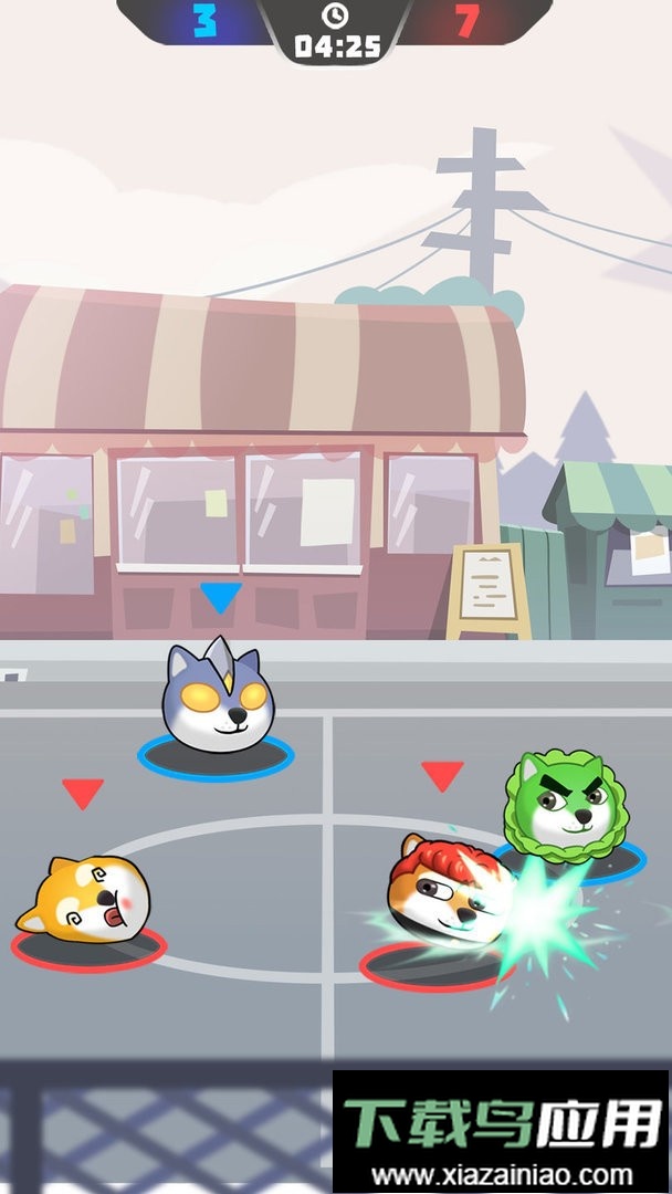 玩家在游戏中将操控自己的狗狗角色攻击对手,争夺篮球控制权,并通过投篮获得更高分数;