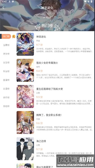 4、点击主页上方的排行榜,可以查看各榜单中最受欢迎的漫画。