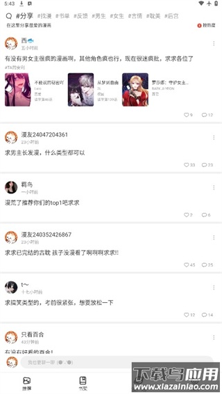 5、点击下方漫广场,能够浏览漫友最新发布的动态,在这里分享交流看法。
