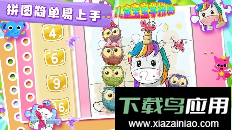 画面采用明亮愉悦的色调;拼图角色以可爱动物为主,深受孩子喜爱;随时随地都能享受拼图乐趣。