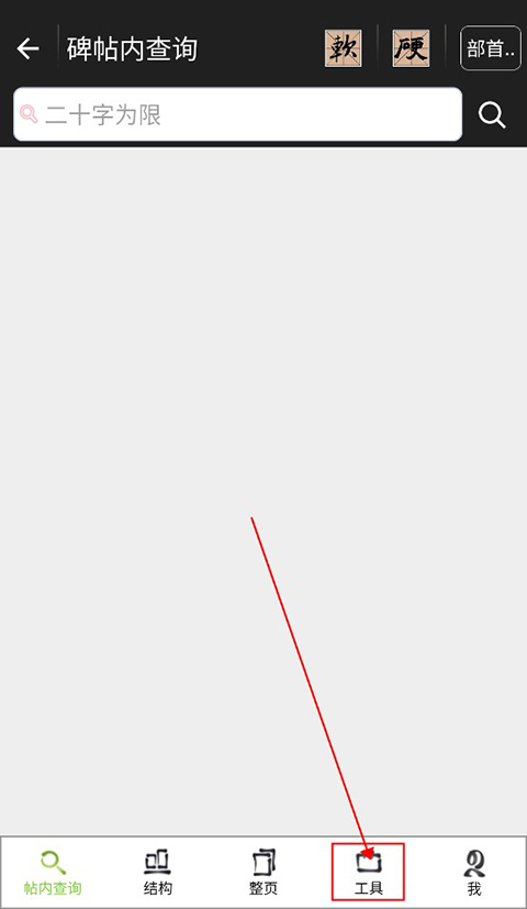 1. 在应用信息页中找到书法字典入口,具体位置参考下图;