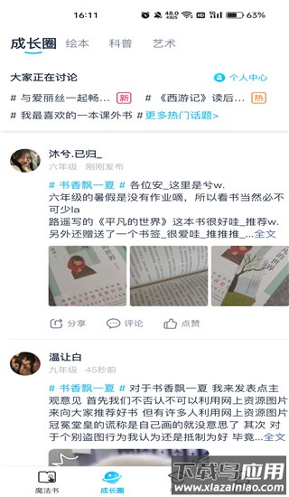2.成长圈板块汇集用户发布的学习分享帖,可通过评论与其他学习者交流心得;