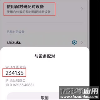 3、通过配对码将安装狮与当前设备进行连接配对;