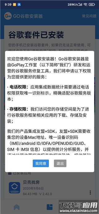下载并打开go谷歌安装器,点击一键安装必要套件,成功后会提示“谷歌服务已安装”,随后即可正常访问Google Play。