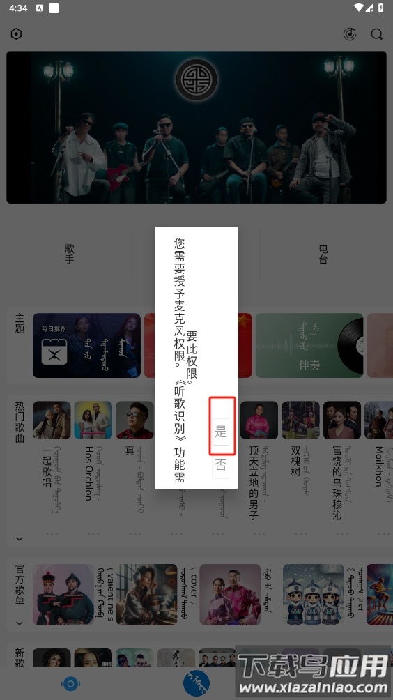 2. 根据提示授权应用使用手机麦克风权限,以启用听歌识曲功能;