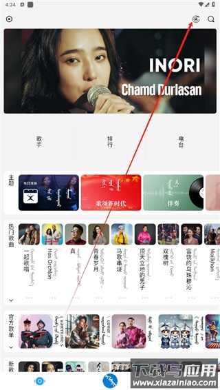 1. 启动应用后,点击界面右上角的听歌识曲图标;