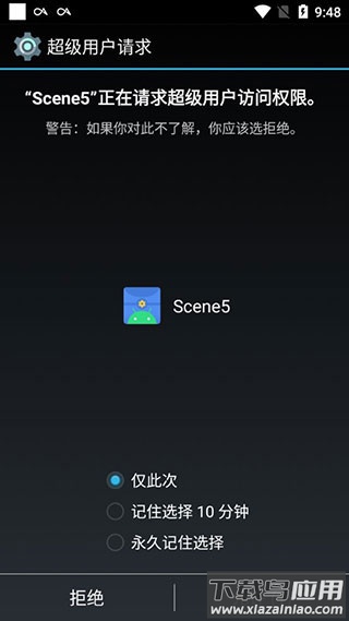 2、选定模式后,需要授予应用超级用户权限;