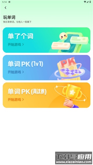 1. 软件支持趣味化学习方式,点击首页的玩单词功能即可进入;