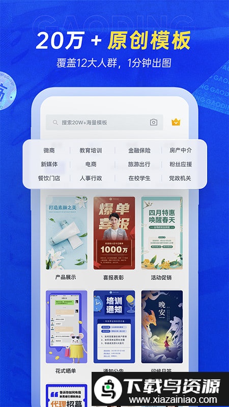 【海报模板】提供名片、融图、课程价目表、招商推广、励志语录等多种模板,由专业设计师打造,支持添加图片与视频;