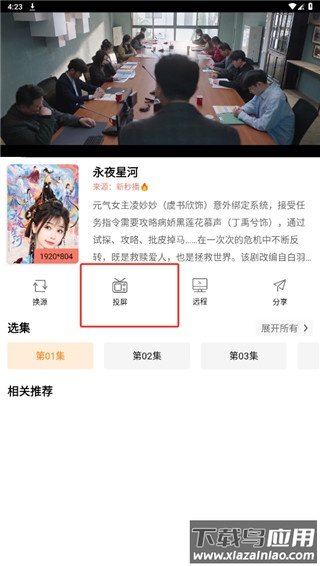 2、进入详情页面后,点击投屏功能按钮;