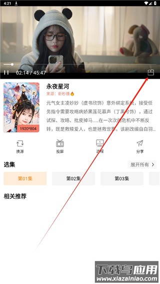 2、进入播放界面后点击右下角按钮,切换至横屏模式;