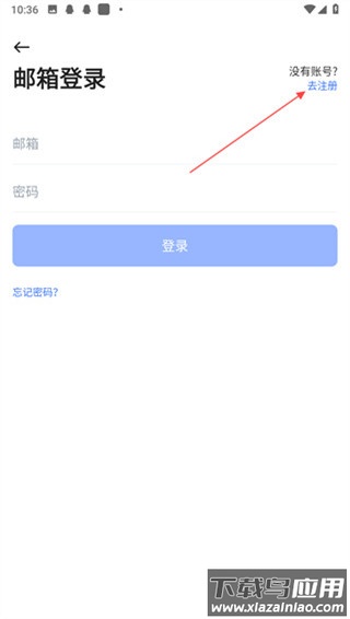 2、在邮箱登录页点击右上角“去注册”选项;