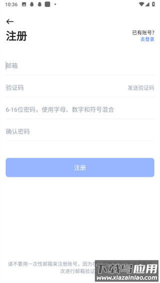 3、输入邮箱地址、验证码及密码等信息,完成注册;