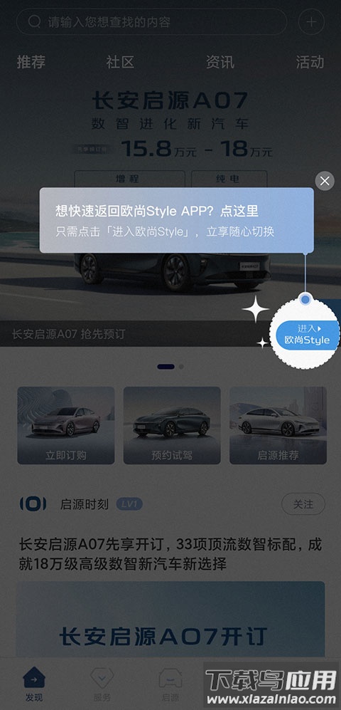 2、登录后点击界面下方的欧尚style入口进入;