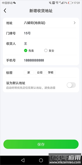 3、填写详细的地址信息与收货人资料,点击保存即可成功添加。