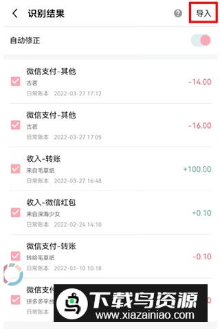 4、识别完成后,仔细核对账单信息是否准确,确认无误后点击【导入】按钮即可完成操作。