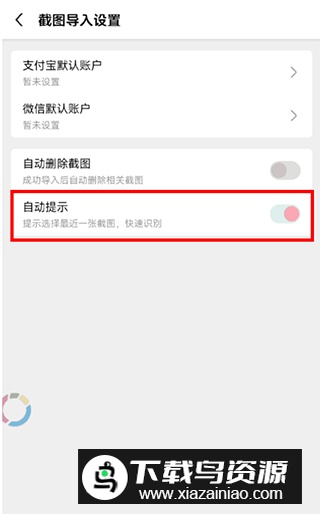3、在导入账单图片前,建议先进行【截图导入设置】并开启【自动提示】;设置完成后,系统通常会自动识别相册中最近的微信账单截图。