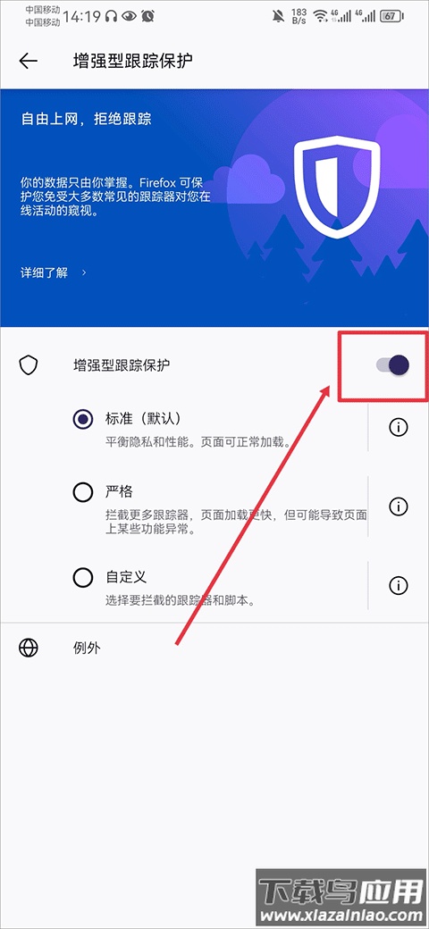 4、最后,将“增强型跟踪保护”旁的开关关闭即可完成操作