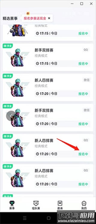 5、平台也是寻找队友的便捷渠道,可以轻松邀请朋友,共同报名同一赛事,并肩作战。