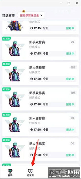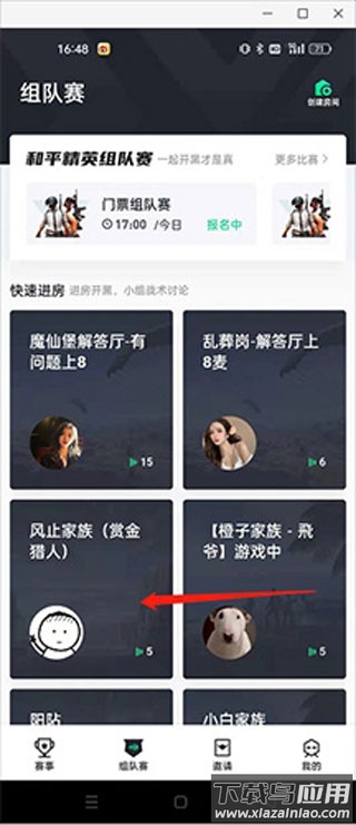 2、页面会展示大量战队房间,选择合适房间点击加入即可。