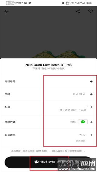 4. 支付前需填写联系电话、配送地址并选择付款方式,支持微信支付等多种渠道。