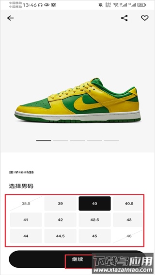 3. 选择合适尺码,缺货尺码会有明确标识,确认后点击继续。