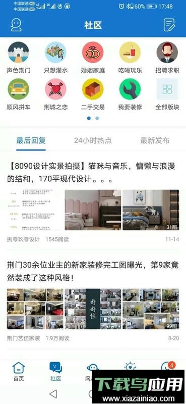 应用集成了门户、论坛、房产、装修及招聘等核心功能板块,一个软件即可处理多种事务;每日还会推送本地新闻与热点内容,方便用户随时掌握动态。