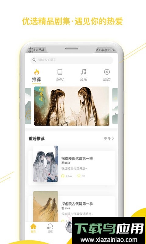 听姬是一款人气很高的线上周边商城,平台上汇集了大量原创设计衍生品,商品分类清晰细致,品质也相当出色。每日都会上新各类周边,用户可以关注心仪商品,及时获取到货提醒,轻松抢到低价好物,快来体验一下吧。