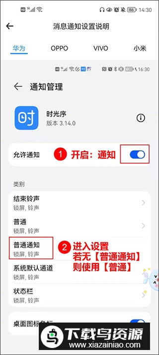 2、在普通通知设置页,同样需要确保“允许通知”开关已打开。
