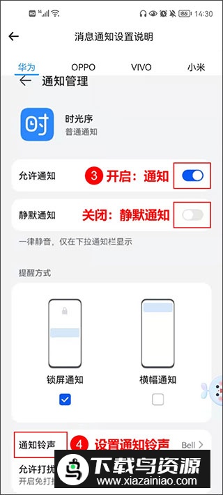 1、请在提醒通知设置页面,保持“允许通知”开关为开启状态。