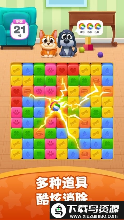 这款以狗狗为主题的卡通消除手游画面十分精美,你需要帮助可爱的狗狗解决所有难题,在充满趣味的关卡中充分展现自己的实力。巧妙使用各种道具能够加快你的通关速度,每个图案都需要仔细观察,找到可以匹配的其他方块,享受轻松愉快的消除时光,喜欢的就在本站下载。