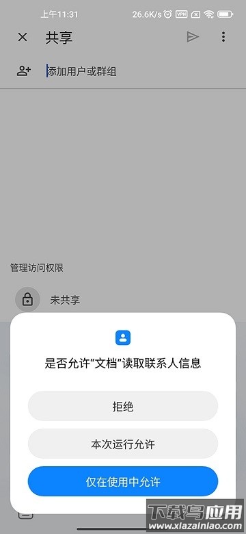 3、随后在“共享”页面添加具体的用户或群组,即可完成文档共享。