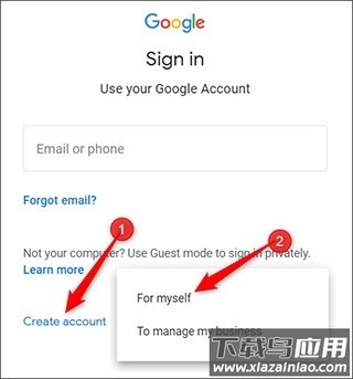 1、访问accounts.google.com,点击“创建帐户”,然后选择“为我自己”。