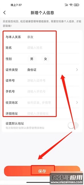 4、填写新成员信息,包括关系、姓名、性别、证件号码等,最后点击保存即可完成添加。