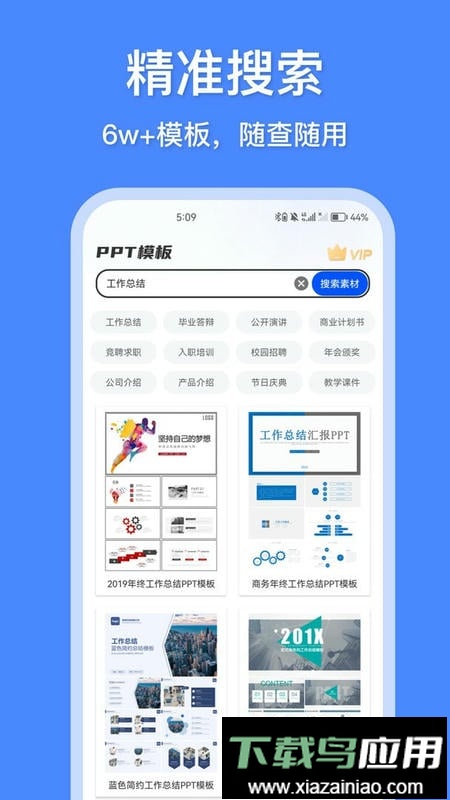 该应用提供大量高质量的PPT模板资源,支持一键下载;包含适用于各行业的通用PPT、Word、Excel等模板,风格多样,如扁平化、欧式、中国风等;模板资源持续更新,紧跟流行趋势,适用于工作汇报、演讲、年会、报告及计划制定等多种场合,旨在全面提升工作效率,增强演示的表现力与感染力;其核心价值在于为用户提供一站式的办公模板解决方案。