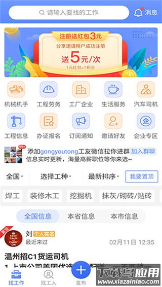 3. 招工与找活信息及时准确,帮助用户快速获取有价值的内容;