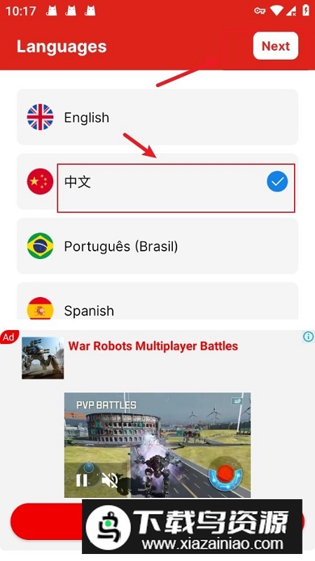2、打开软件并授予全部权限,进入主界面后首先设置语言,此处以中文为例进行演示;