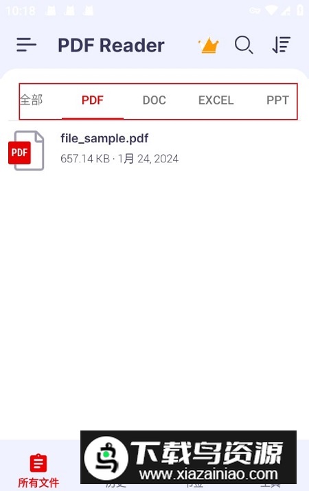 3、在应用界面中可以看到主要功能按钮,例如PDF、DOC、EXCEL、PPT等;