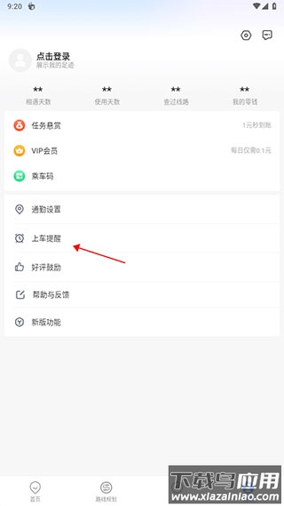 1、进入“我的”页面,点击“上车提醒”功能;