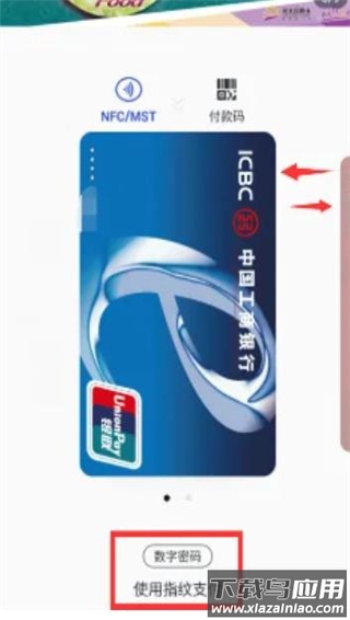 4、在银行卡界面左右滑动可切换卡片,下方支持设置指纹支付;