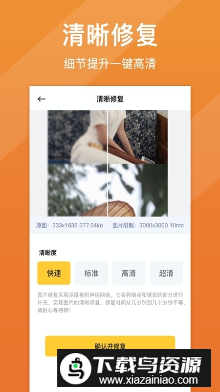 照片修复功能可智能增强模糊图片的清晰度,细节优化一键达成高清效果; 超清人像模式能自动分析画面暗淡部分,在提亮整体同时保留人物细腻特征; 照片去噪技术可精准识别图像噪点,在消除杂色的过程中避免重要细节变得模糊。
