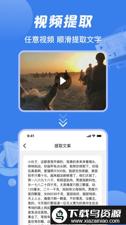 这款视频提取文案软件能够轻松从视频中提取链接、音频、图片与文字,也可分离视频中的声音;软件同时具备音频转文字、图片文字识别、悬浮提词及去水印等多项实用功能,可充分适应视频制作、商务办公与学习记录等多种场景,是用户处理多媒体内容的得力助手。