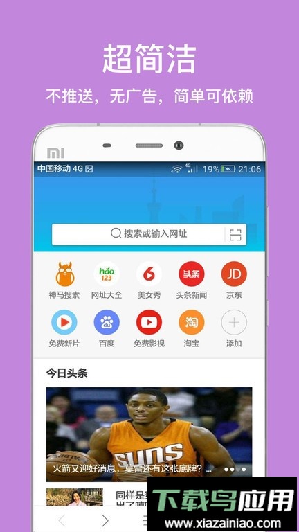 2. 简洁浏览:占用内存小,响应迅速;集成主流搜索引擎,每日推送精选资讯,设计简约,无广告与冗余推送,节省流量与存储空间。