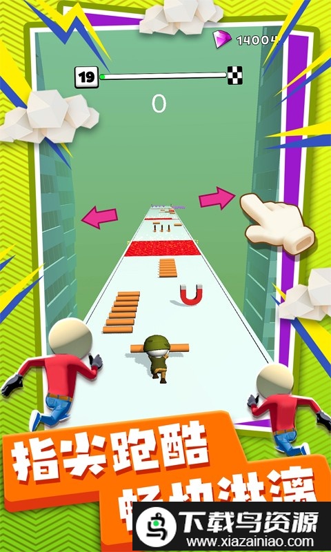 游戏中没有额外道具,核心是持续收集木头,让手中的杆子尽可能变长;与常见跑酷游戏相比,本作难度更高,滑动屏幕观察并破解各种机关是关键。
