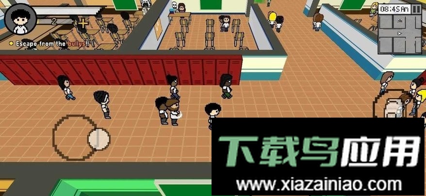 在这款恶搞风格的校园生活模拟游戏里,玩家将置身于一个由2d像素构成的混乱校园中,体验充满戏剧性的帮派争斗。通过虚拟摇杆操控角色移动,你将跟随剧情发展完成一系列挑战任务,感受独特的校园战争模拟乐趣。